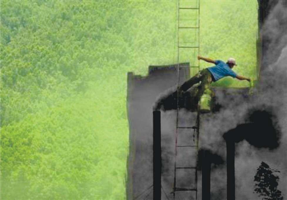 Nguyễn Đức Trí) Nguyễn Đức Trí là một trong những nghệ sĩ nhiếp ảnh trẻ ở Huế “bắt đầu cuộc chơi mới” với thể loại ảnh ý niệm. Ở thể loại này, hình ảnh kết hợp nhuần nhuyễn giữa ý tưởng sáng tạo và hình thức thể hiện bằng các thủ pháp, phương tiện kỹ thuật của nhiếp ảnh để thể hiện tư tưởng của tác và có khả năng chuyển tải những thông điệp mang tính tích cực về mọi vấn đề của đời sống xã hội. Cứu lấy màu xanh là một tác phẩm nhiếp ảnh ý niệm điển hình, mô tả một anh thợ lăn sơn đang làm việc, bên trái anh là thảm rừng xanh trải dài, bên phải là từng lớp sơn đen, làn khói ô nhiễm đen kịt tỏa ra từ ống khói các nhà máy. Con lăn của anh thợ sơn có màu xanh của cây rừng, đang không ngớt xóa đi màu tối mù, đen bẩn của những ống khói. Ở “Cứu lấy màu xanh”, kỹ thuật photoshop, cắt, dán, phối hình ảnh theo ý tưởng đã đóng vai trò then chốt. Nguyễn Đức Trí diễn đạt hiện thực bằng cách thức mới, đi ngoài lề của truyền thống, nhưng lại giàu sức mạnh của ý tưởng mạnh mẽ, rõ ràng, mạch lạc cộng với sự hài hòa về bố cục, kĩ thuật tạo hình. Hiệu ứng thị giác đã thuyết phục được người xem. Bức ảnh được đánh giá ấn tượng, một xung lực của thông điệp bảo vệ môi trường. Bạn hãy “sơn” lại quả đất bằng màu xanh của cây cỏ, và xóa bỏ đi những vết bầm đen của ô nhiễm để có một môi trường sống trong lành, đầy màu xanh. Tác phẩm còn mang nghĩa, chỉ có bàn tay con người mới cải tạo lại được đời sống. Cứu lấy màu xanh vinh dự được trao giải nhất và nhì tại Cuộc thi và triển lãm ảnh ý tưởng năm 2012.