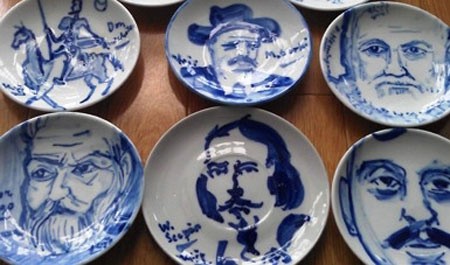 | Một số tranh trên đĩa gốm của Nguyễn Huy Thiệp |