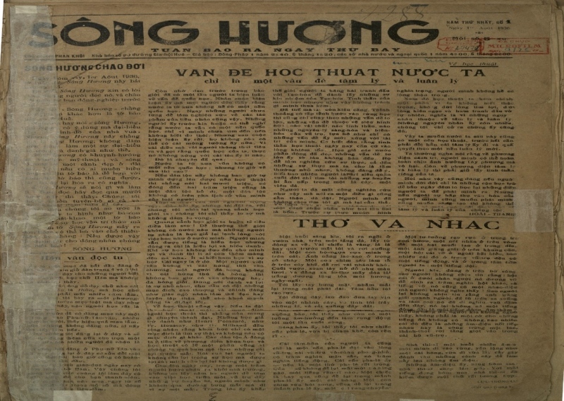 | Tuần báo Sông Hương của Phan Khôi số 1 ra ngày 1/8/1936 |