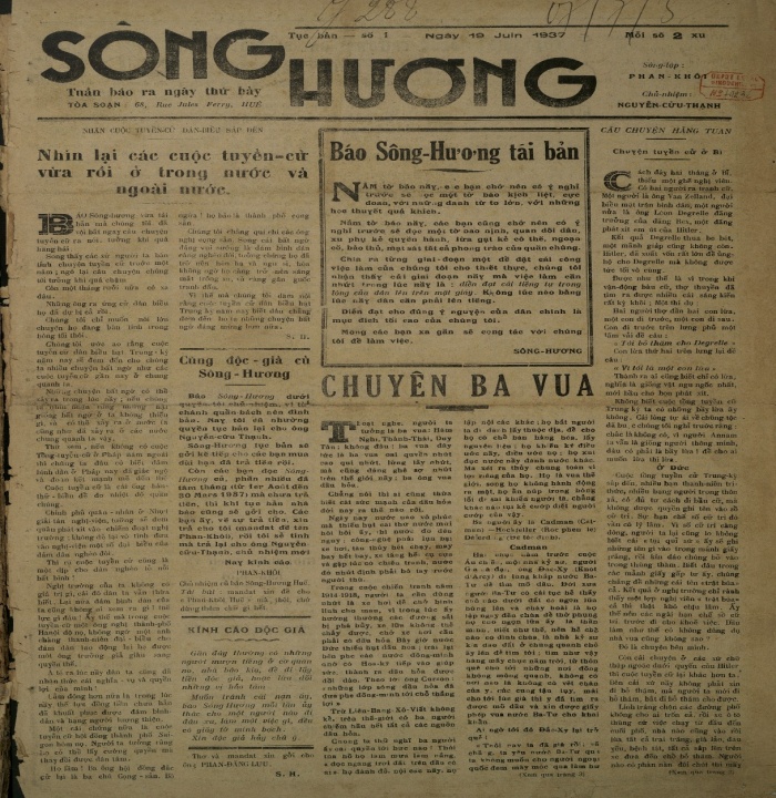 | Sông Hương Tục Bản số 1 ra ngày 19/6/1937 |