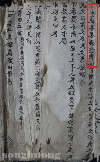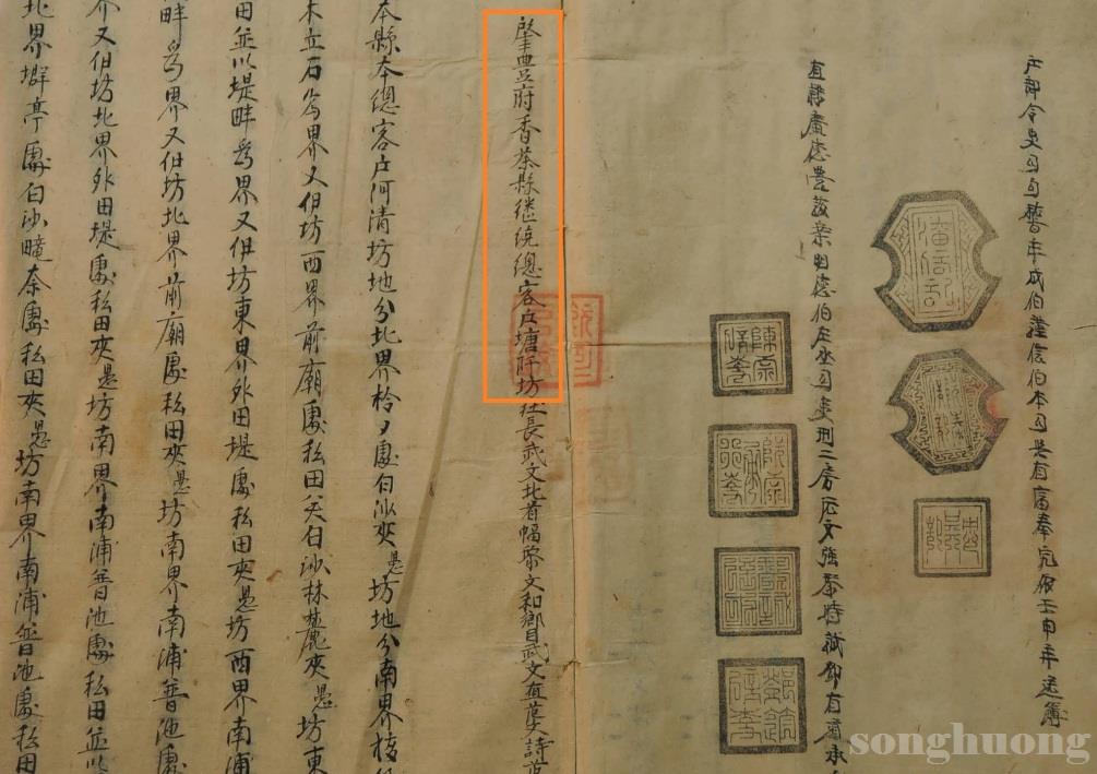 | Đường Thiên phường (塘阡坊) trong văn bản đất đai năm Vĩnh Khánh thứ 3 (1731) |