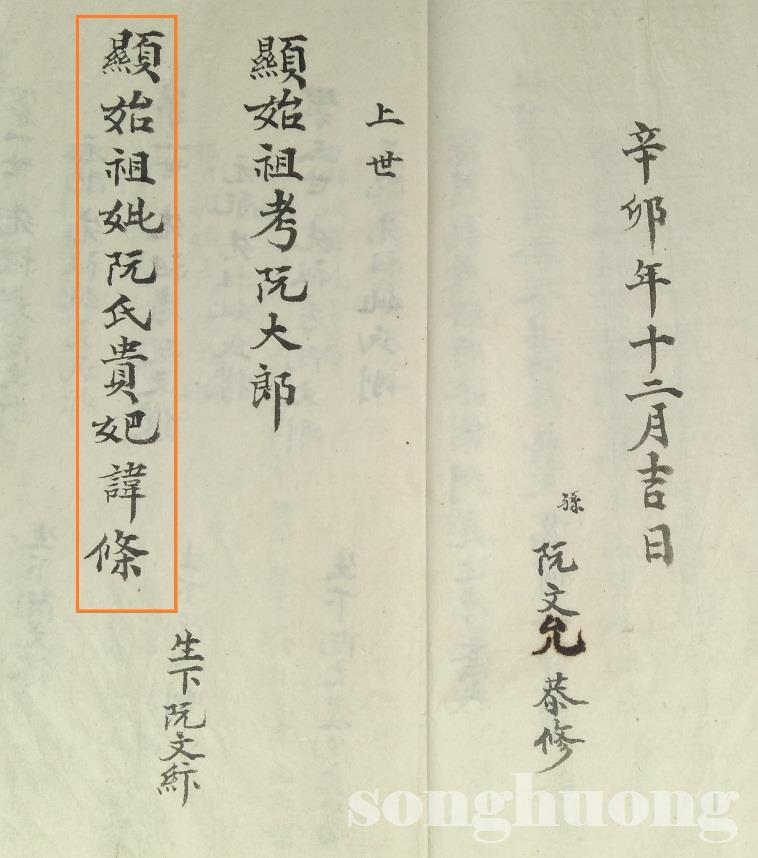 | Trang chép về bà Nguyễn Thị Điều trong gia phả họ Nguyễn |