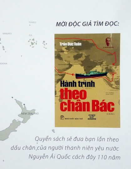 Nhà xuất bản Trẻ vừa ấn hành tấm bản đồ mô tả lại hành trình 30 năm tìm đường cứu nước của Bác Hồ, kích cỡ ngang 1m, cao 70cm, in 4 màu trên giấy dày.