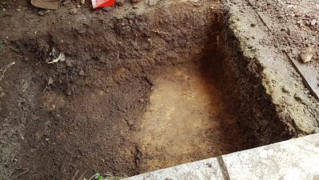| Nền đất lạ tại hố khảo cổ nhà ông Nguyễn Hữu Oánh |