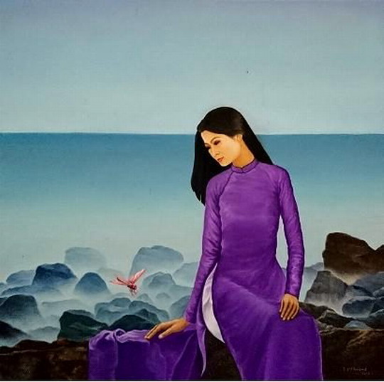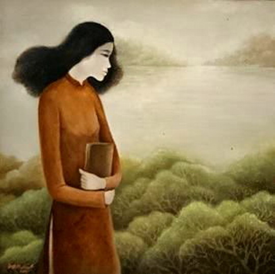 | Tác phẩm " Mây và tóc em bay" của họa sĩ Nguyễn Đình Phương |