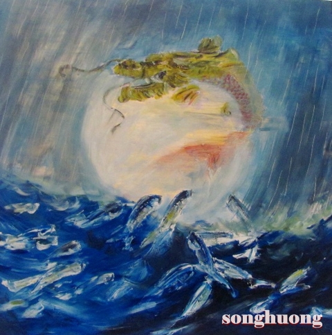 | Tác phẩm Vượt vũ môn của họa sĩ Nguyễn Quốc Sơn |