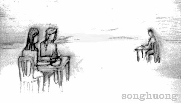 Khuê phác một cử chỉ, định nói nhưng lại thôi. Một cơn gió thoảng ngoài sông...