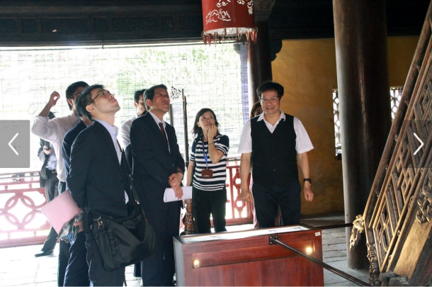 TS.Phan Thanh Hải (mang kính, hàng đầu) cùng đoàn cán bộ của Viện Di sản Waseda khảo sát ở Đại nội-Huế