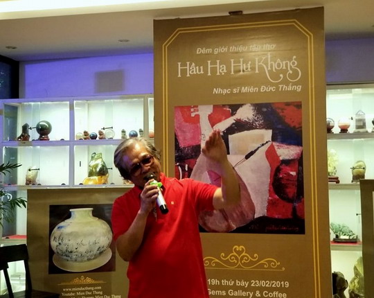 | Nhạc sĩ, nhà thơ Miên Đức Thắng tại buổi ra mắt tập thơ "Hầu hạ hư không" |