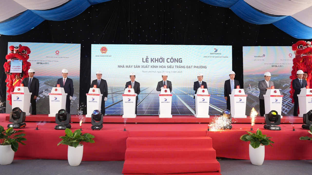 Bấm nút khởi công nhà máy sản xuất kính hoa siêu trắng Đạt Phương, Ảnh: UBND Thành phố Huế