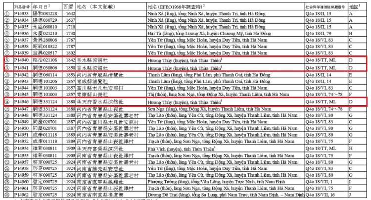 Nguồn: 京大学経済学部資料室年報 , ベトナムの神勅九州国立博物館所蔵資料 の概要と基礎データ.
