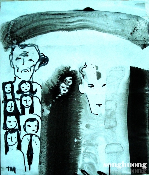 PHẠM PHÚ PHONGTôi ngồi bất động, tựa như nuốt phải một cây gậy, người cứng đờ, im lặng, cho đến khi bản nhạc chấm dứt. Nguyễn Hương cũng im lặng ngồi đối diện góc tường, châm thuốc hút. Mới mấy năm không gặp, bây giờ trông anh đã khác hẳn. Đầu tóc hớt cao, lưỡng quyền nhô ra. Thời gian đã kịp cày xới, để lại trên trán anh những đường rãnh nhỏ.