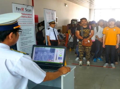 Khoa Kiểm dịch y tế - Trung tâm Y tế dự phòng tỉnh Thừa Thiên Huế vừa triển khai máy đo thân nhiệt giám sát khách du lịch nhập cảnh từ Thái Lan trên chuyến bay VZ 3941 tại Cảng hàng không Quốc tế Phú Bài.