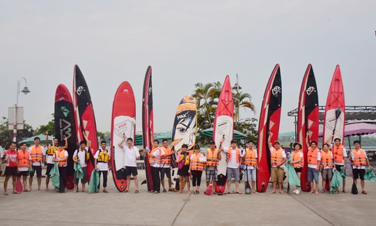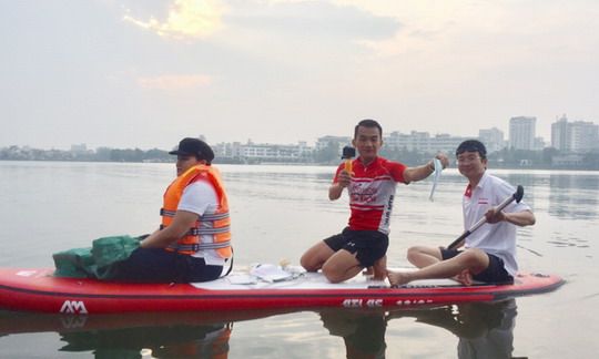 Cán bộ văn phòng UBND tỉnh thu gom rác trên sông Hương