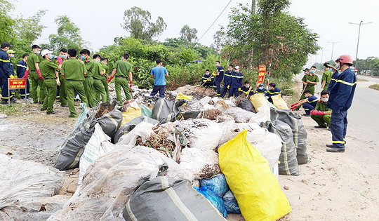 Cán bộ, chiến sĩ Công an tỉnh tham gia dọn bãi rác