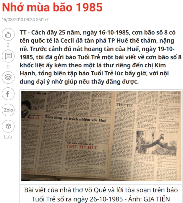 | Ảnh trích đầu bài viết của Nhà thơ Võ Quê về bão Cecil 1985 trên báo Tuổi Trẻ Online 8-2010- Ảnh: TT Online |