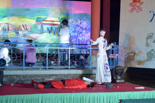 | Các hoạ sĩ vẽ tranh trực tiếp tại đêm thơ |