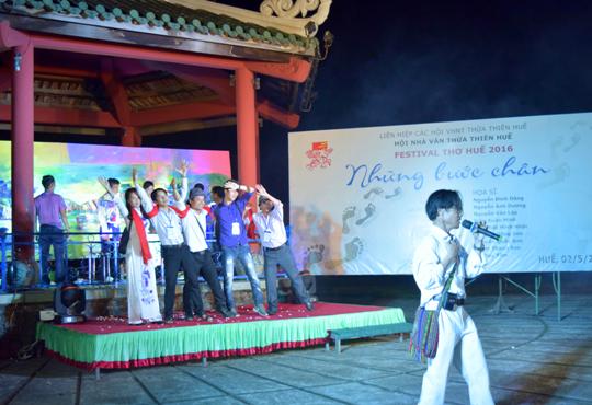 Tối ngày 2/5, tại công viên 3/2, bên bờ sông Hương thơ mộng, Liên hiệp các Hội VHNT tỉnh Thừa Thiên Huế phối hợp với Hội Nhà Văn Thừa Thiên Huế tổ chức chương trình Festival Thơ Huế 2016 với chủ đề “Những bước chân”.