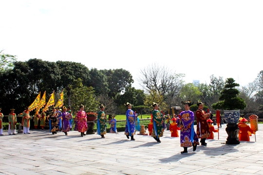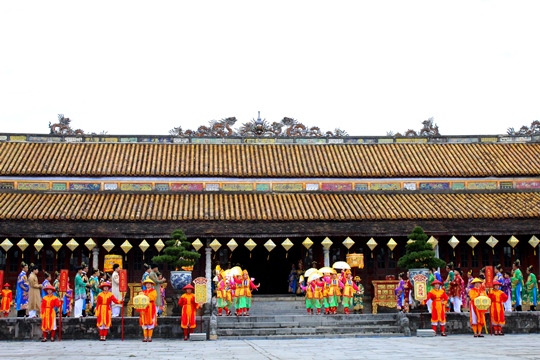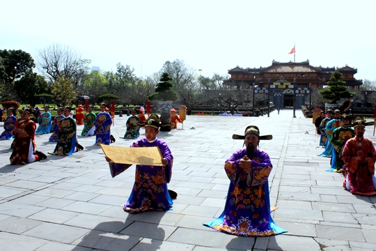 Sáng 2/2, Tại sảnh Điện Thái Hòa (Đại Nội Huế), Trung tâm Bảo tồn Di tích Cố đô Huế tổ chức tái hiện lễ Nguyên đán thời Nguyễn bằng hình thức sân khấu hóa.