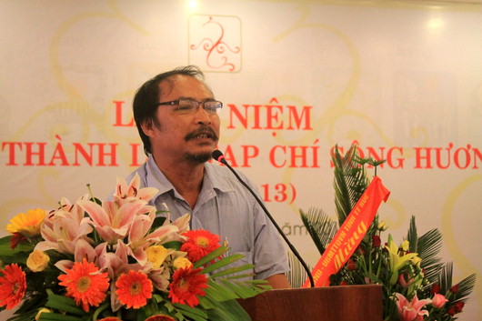 Nhà văn Hồ Đăng Thanh Ngọc, Tổng Biên tập Tạp chí Sông Hương phát biểu tại Lễ Kỷ niệm