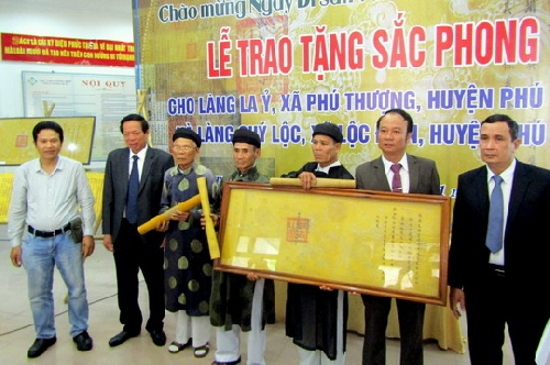 Sáng ngày 23/11, Sở Văn hóa Thể thao phối hợp với Thư viện Tổng hợp tỉnh tổ chức trao tặng Sắc phong cho làng La Ỷ - Xã Phú Thượng – Phú Vang và làng Quý Lộc – Xã Lộc Điền - Phú Lộc. Hoạt động nhằm chào mừng kỷ niệm Ngày di sản Văn hóa Việt Nam (23/11).