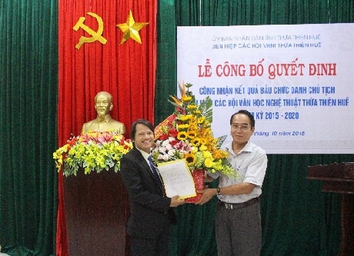Liên hiệp các Hội Văn học Nghệ thuật Thừa Thiên Huế vừa tổ chức Lễ công bố quyết định công nhận kết quả bầu chức danh Chủ tịch Liên hiệp các Hội Văn học Nghệ thuật nhiệm kỳ 2015 - 2020.
