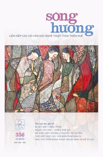 Tháng Mười, chúng ta có thêm dịp tôn vinh cái đẹp qua góc nhìn đầy nữ tính trên Sông Hương. Hầu hết ở các chuyên mục trên số báo 356 này đều hướng về phái đẹp. Và chính họ đồng thời sáng tạo nên cái đẹp khơi nguồn sự sống vĩnh hằng. Chùm thơ mở đầu với sự góp mặt của những tác giả nữ ở Huế như Đông Hà, Bạch Diệp, Châu Thu Hà, Lưu Ly cùng nhiều tác giả nữ trong nước và ở nước ngoài, mỗi bài thơ như từng ô cửa sổ nhỏ xinh được mở ra vào một sáng tinh với ánh mặt trời chưa làm khô mất những giọt sương giữa thảo nguyên xanh ngút.