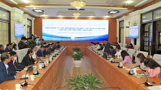 Báo cáo tại buổi làm việc, Tiến sĩ Phan Thanh Hải - Giám đốc sở Văn hóa và Thể thao cho biết, trong thời gian qua, các hoạt động văn hóa, lễ hội, biểu diễn nghệ thuật, kỷ niệm các ngày lễ lớn được tỉnh tổ chức phù hợp, đảm bảo thực hiện nghiêm túc các biện pháp phòng chống dịch COVID-19. Hoạt động trưng bày, triển lãm được tổ chức với nhiều hình thức, nội dung phong phú. Công tác bảo tồn và phát huy giá trị di sản văn hóa được tập trung thực hiện hiệu quả.