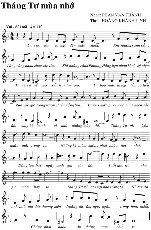 Nhạc: HỒ ĐÌNH PHỤC Lời thơ: HỒ ÁI TOÀN