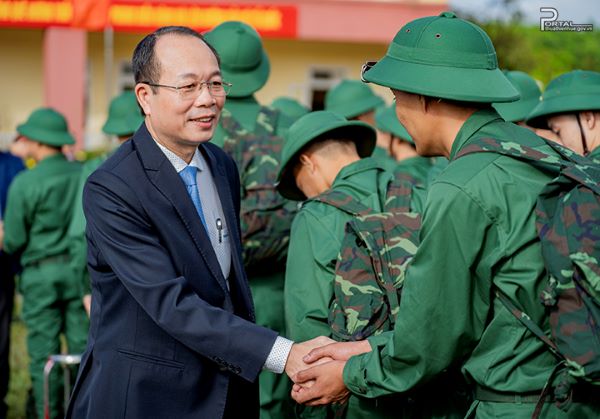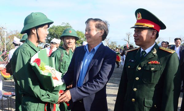 | Phó Chủ tịch UBND tỉnh Phan Quý Phương động viên các thanh niên lên đường nhập ngũ |