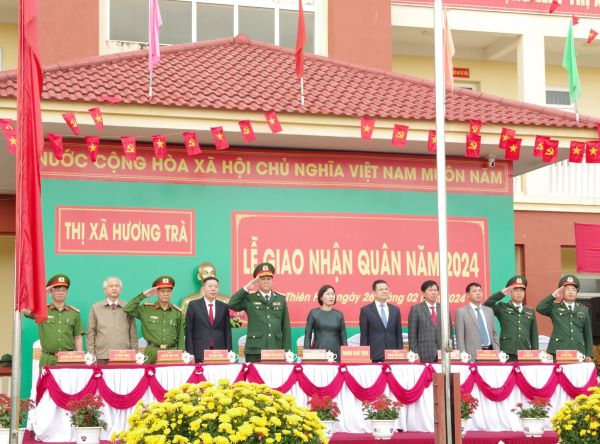 Tại Thị xã Hương Trà. Đến dự lễ giao, nhận quân có Đại tá Thái Đức Hạnh – Phó Chủ nhiệm chính trị Quân khu 4; UVTV Tỉnh uỷ, Chủ nhiệm UBKT Tỉnh uỷ Phạm Thị Minh Huệ; Phó Chủ tịch UBND tỉnh Hoàng Hải Minh.