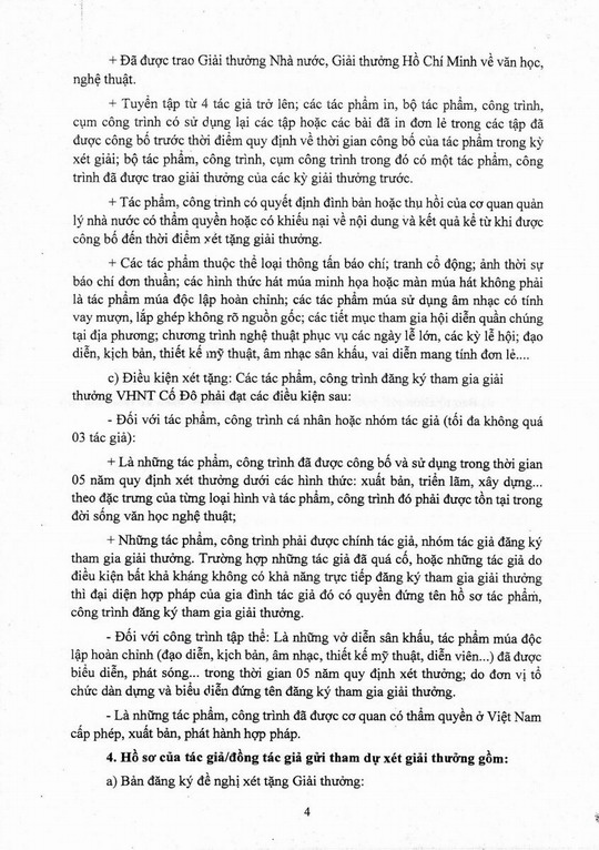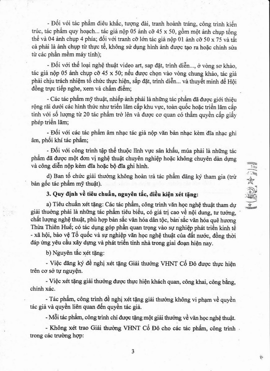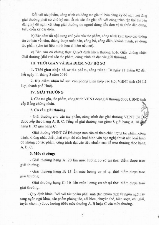 Thể lệ Giải thưởng VHNT Cố đô tỉnh Thừa Thiên Huế lần thứ VI (2013 - 2018)