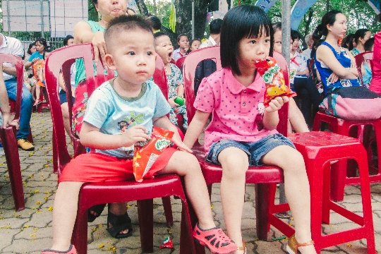 | Các em nhỏ thích thú, chăm chú xem văn nghệ |