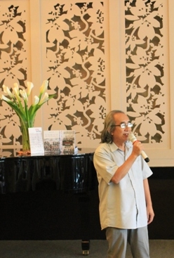 | Nhà thơ Nhật Chiêu tại buổi ra mắt sách |