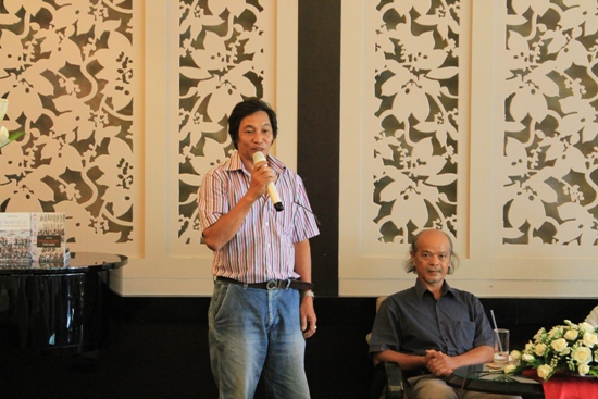 | Các nhà nghiên cứu Nguyễn Tiến Văn và Inrasara tại buổi ra mắt sách |