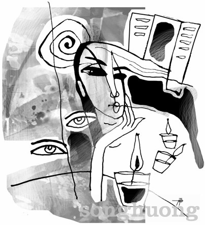 - Anh linh vương phụ đang trôi dạt phương nào - mặt úp lên khuôn ngực nổi vồng thanh tân mơn mởn của nàng tiên. Văn Đức râm rấm khóc nghe ra ai oán não nề.