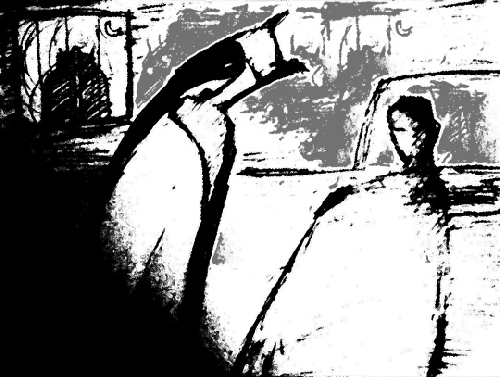 Trên gác xép nhà sàn, bên bếp rưng rức lửa, một già, một trẻ ngồi cạnh nhau đã lâu không vẳng nửa lời. Râu tóc cụ già râm rấp bạc, chừng như sự thế vơi đầy đã hằn lên ánh mắt màu nâu nẩu còn thơm chiều sơn cước. Bất giác vặn mình những đốt sống cọ mài răng rắc. Chàng trai thấy bóng cụ già chập chờn trên vách nứa, lòng lại bồi hồi thương cảm: