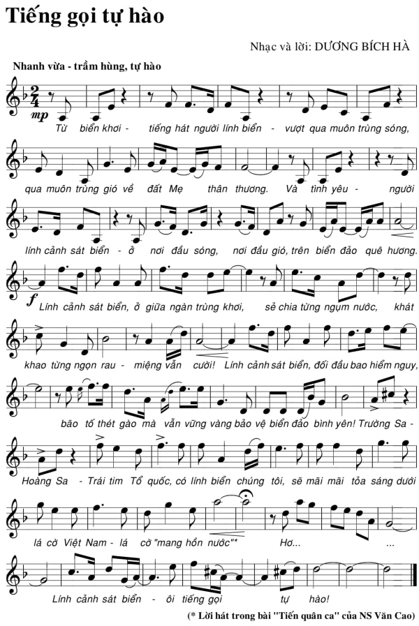 Nhạc và lời: DƯƠNG BÍCH HÀ