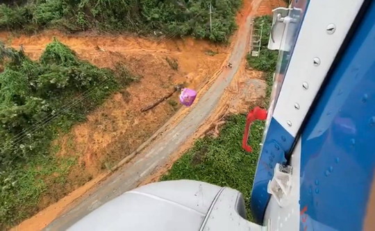 | Trực thăng thả hàng cứu trợ đến điểm sạt lở (Ảnh internet) |