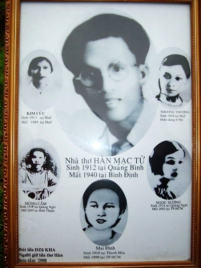 • MAI VĂN HOANKỷ niệm 70 năm ngày mất Hàn Mặc Tử (11/11/1940 - 11/11/2010)Hàn Mặc Tử tên thật Nguyễn Trọng Trí, sinh năm 1912, mất năm 1940. Quê Lệ Mỹ, Đồng Hới, Quảng Bình. Tổ tiên họ Phạm, ông cố Phạm Nhương, ông nội Phạm Bồi, vì liên can quốc sự trốn vào Thừa Thiên đổi ra họ Nguyễn. Cha là Nguyễn Văn Toản, mẹ là Nguyễn Thị Duy.