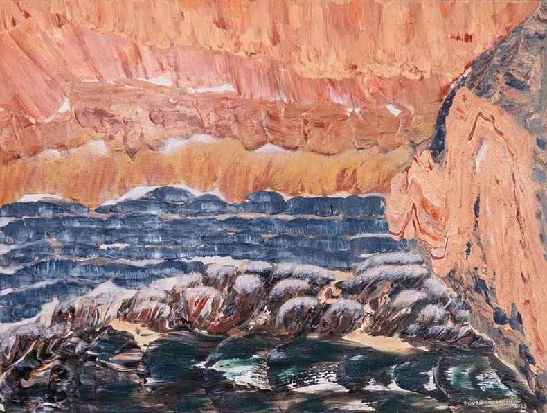 Như vẽ nhanh và mạnh, không truyền đạt chi tiết, giảm thiểu tối đa sự kể tả, thay vào đó là cách khai thác sự vật dựa trên cái nhìn tổng thể, đặt các hình thể một cách hợp lý để nhằm đưa tới một kích động thị giác mạnh mẽ. Vì thế thiên nhiên của Như hiện lên khỏe khoắn, mang tính mô hình gợi dẫn, để lại ấn tượng về những ngẫu tượng có sức mạnh biểu nghĩa lớn hơn cách vẽ thiên nhiên theo lối kể tả thường thấy. Trong tranh Như, thoạt nhìn, núi vẫn là núi, sông vẫn là sông, ghềnh đá vẫn là ghềnh đá nhưng ẩn sau những họa tiết ấy có cái gì đó sâu xa hơn, va chấn hơn và gợi dẫn về chiều sâu của huyền bí nội tâm. Thiên nhiên trong tranh Như không mượt mà, không hướng tới sự hài hoà về hình thức, không an ủi chở che mà là một thứ thiên nhiên mang những vết thương, những vết thương đến từ chính con người, buộc con người phải tự vấn về hành vi của mình nếu không muốn đối diện với sự tận diệt. Tôi có cảm giác thiên nhiên đi vào Như không phải thông qua thị giác, không đi từ ngoài vào mà là một thứ thiên nhiên đi từ bên trong ra. Là một thi sĩ nên trực giác cộng thông với thứ bản năng mạnh mẽ là nguồn khởi sinh cho kiểu dạng thiên nhiên ấy. Một kiểu thiên nhiên của Như, không trộn lẫn. Kiểu thiên nhiên không phải để ngắm mà là để nghĩ, để truy vấn. Một kiểu thiên nhiên làm khó cho mọi diễn giải, nơi để cảm nhận và rồi để bặt âm.