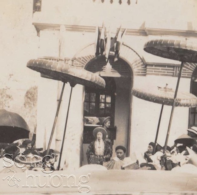 | Cảnh đón dâu từ lầu Công quán đến Đại Nội. Nguồn: báo Le Monde Colonial |