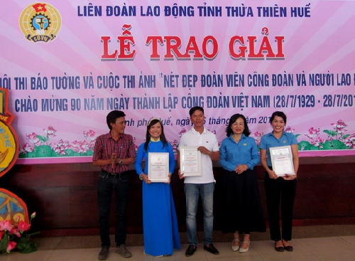 Chiều 25/7, tại Trung tâm VHTT Tỉnh, Liên đoàn Lao động (LĐLĐ) tỉnhThừa Thiên Huế đã tổ chức trao giải cuộc thi ảnh “Nét đẹp Công đoàn và người lao động” và hội thi báo tường chào mừng kỷ niệm 90 năm Ngày thành lập Công đoàn Việt Nam (28/7/1929 - 28/7/2019).