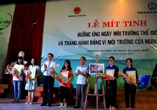 Sáng 14/6, tại giảng đường I trường Đại học Sư phạm Huế, Bộ Giáo dục và Đào tạo tổ chức Lễ mít tinh hưởng ứng Ngày Môi trường thế giới và Tháng hành động vì Môi trường của ngành Giáo dục.