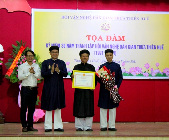 Nhân dịp này, Ủy ban nhân dân tỉnh Thừa Thiên Huế đã tặng Bằng khen cho 01 tập thể và 05 cá nhân thuộc Hội Văn nghệ dân gian tỉnh vì đã có thành tích xuất sắc trong 30 năm xây dựng và phát triển (1991 - 2021).