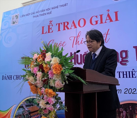 | Nhà văn Hồ Đăng Thanh Ngọc - Chủ tịch Liên hiệp các Hội VHNT Thừa Thiên Huế phát biểu tổng kết cuộc thi |
