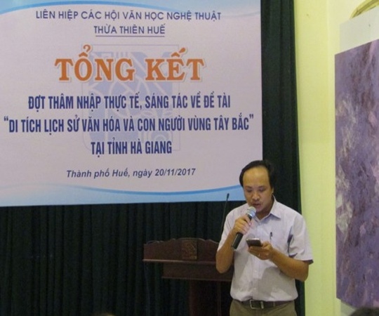 Chiều ngày 20/11, Liên hiệp các Hội Văn học nghệ thuật tỉnh Thừa Thiên Huế đã tổ chức buổi Tổng kết chuyến thâm nhập thực tế sáng tác, giao lưu, trao đổi về chủ đề “Di tích lịch sử văn hóa và đời sống của đồng bào Tây Bắc” tại tỉnh Hà Giang.