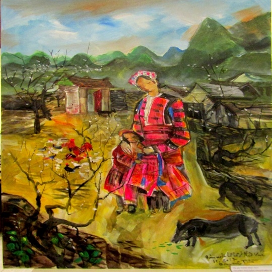 | Tác phẩm " Bản dân Lolo ở Mèo Vạt" của họa sĩ Đặng Mậu Tựu |