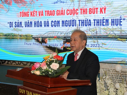 Chiều ngày 10.1, Ban Tuyên giáo Tỉnh ủy Thừa Thiên Huế đã tổng kết và trao giải cuộc thi bút ký “Di sản, văn hóa và con người Thừa Thiên Huế”. Tham dự có Phó Bí thư Thường trực Tỉnh ủy Phan Ngọc Thọ, đồng chí Hoàng Khánh Hùng - UVTV Tỉnh ủy, Trưởng ban Tuyên giáo Tỉnh ủy.
