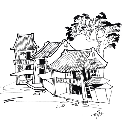 Tác phẩm HIỂN LÂM CÁC (Bút sắt, 45cm x 75cm, 2019) của họa sỹ Nguyễn Đình Việt